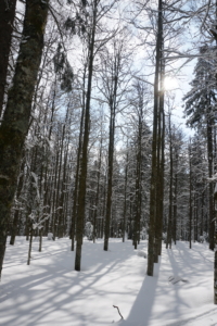 Gegen Westen war alles mit Doppelstock möglich. Gegen den Ostwind, 1% ansteigend, hatte ich im Diagonalschritt bei 7 cm Neuschnee das Gefühl, als würde ich in etwa 2-3%igem Gelände laufen – bei maschineller Spur.