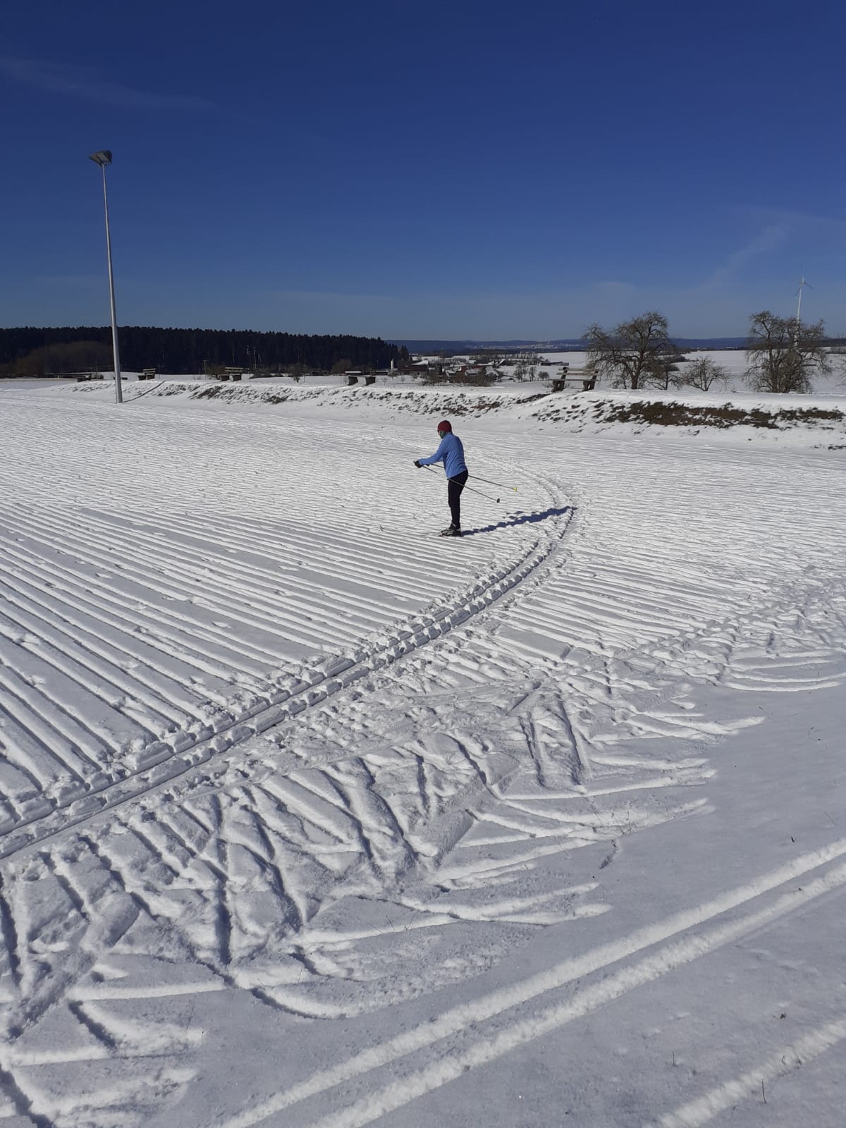 Es hat mit Hartwachski viel Spaß gemacht, wohlwissend, dass einige Beobachter vielleicht überlegten, ob sie nicht in der Psychiatrie anrufen sollten. Auf die Idee zu diesem „Unternehmen“ kam ich, als meine 600 Meter Runde mit 2 Diagonalen, die ich die Tage zuvor lief, mit Schuppenski „kaputtgelaufen“ hatte. Da merkte ich, dass mit Wachsski, beim einmaligen Laufen einer Spur, ich sehr gut klar kam. Zusätzlich soll man ja in Coronazeiten unnötige Autofahrten vermeiden, nach dem Motto: „Bleibe zuhause und sei kreativ!“